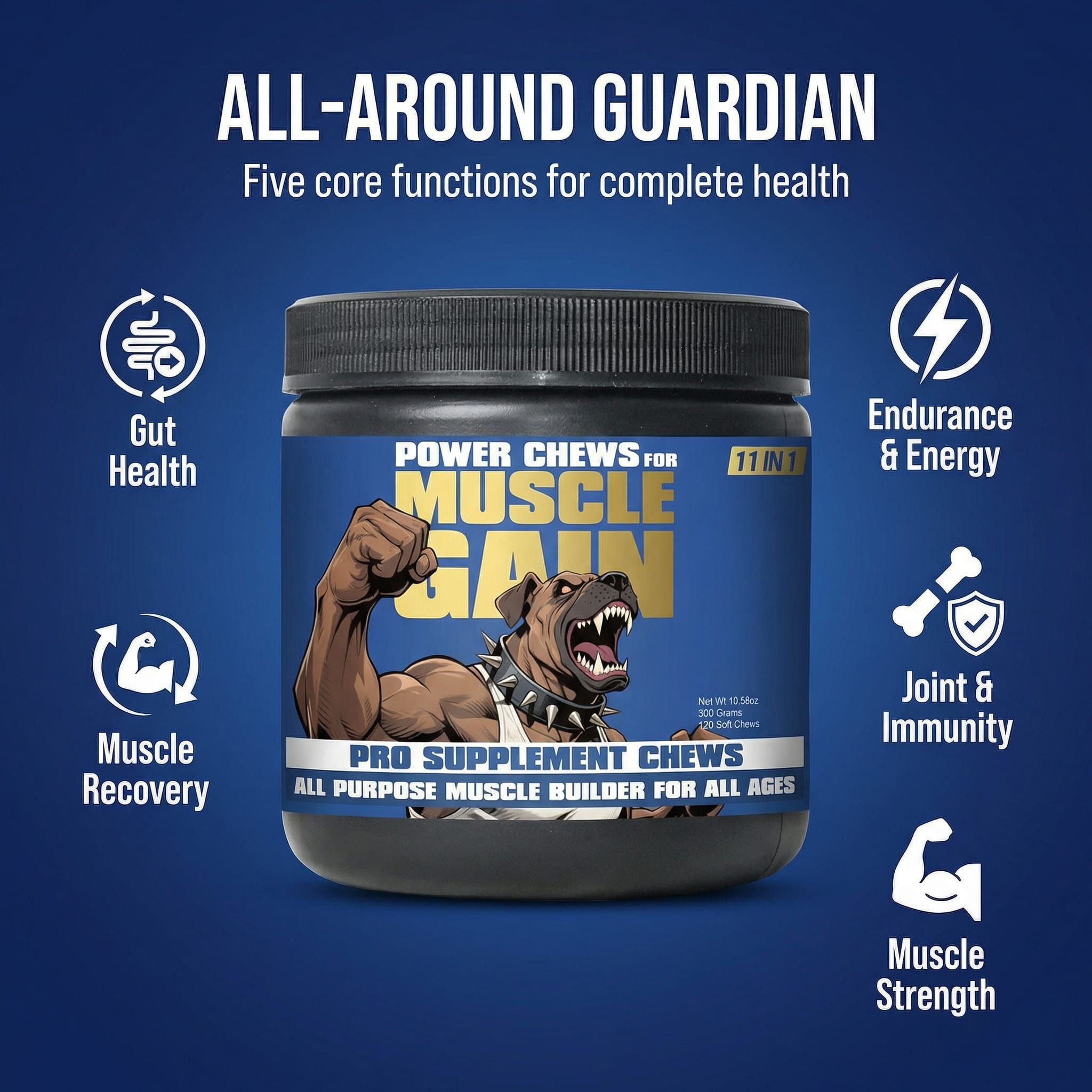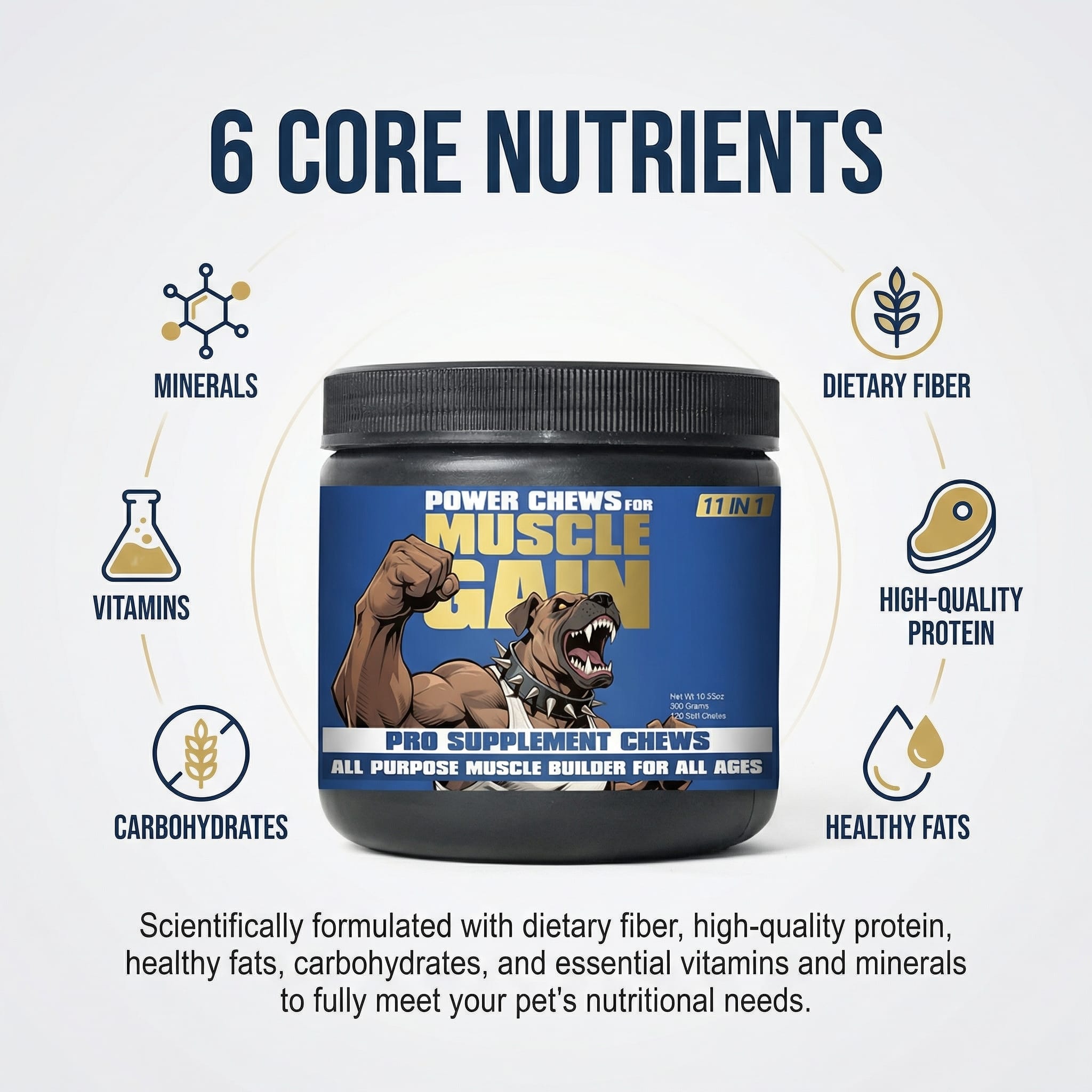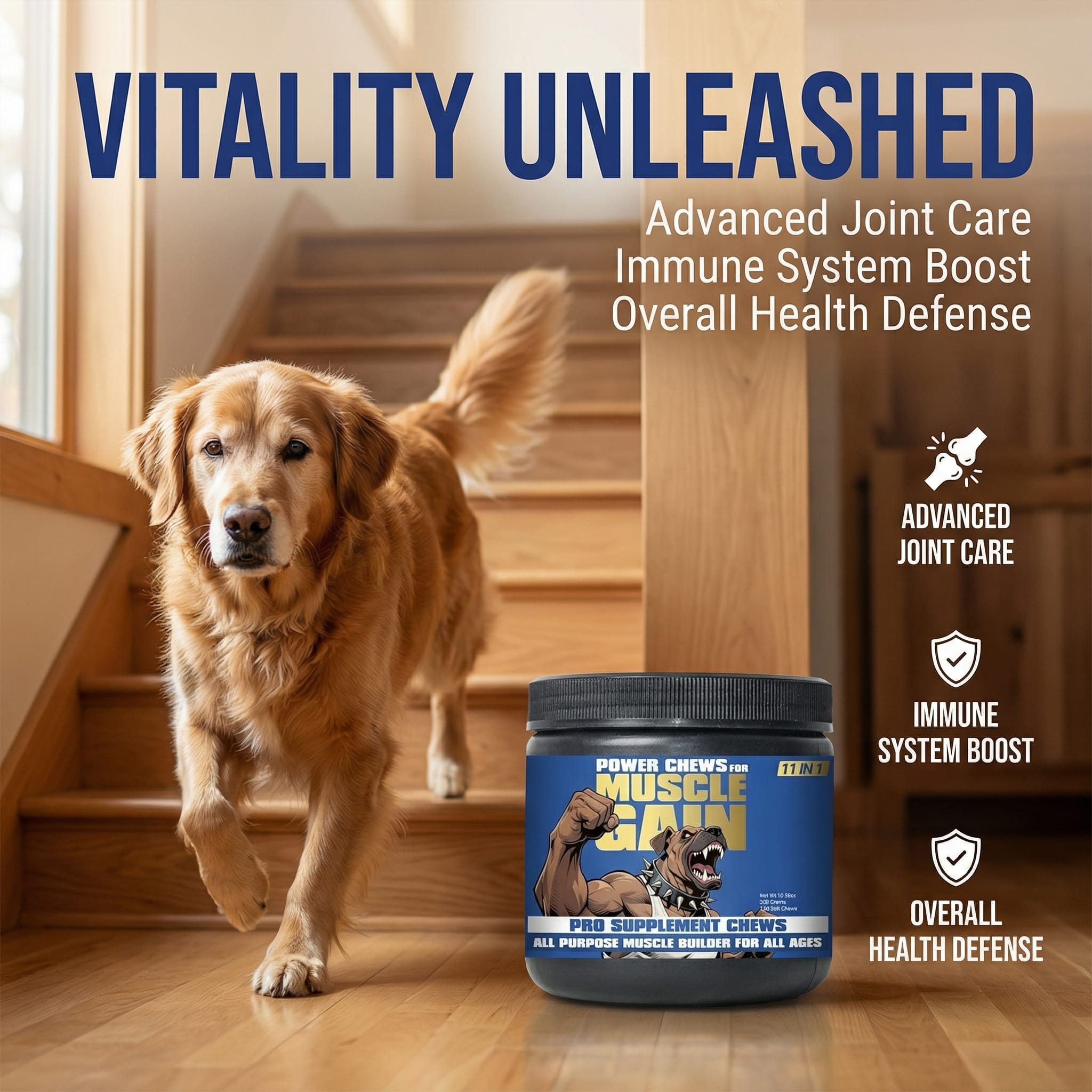 11-in-1 dog supplement for muscle growth.